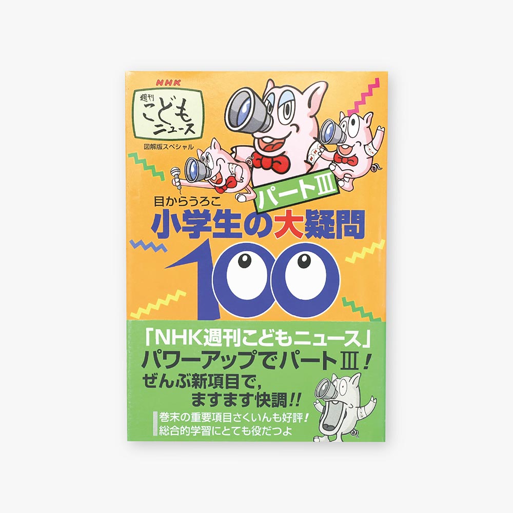 書籍 小学生の大疑問 100 NHK 総合「週刊こどもニュース」の出版化。放送内容を素材に Q&A 方式で「目からウロコ」の内容を再編成した書籍。リサーチなどを中心に編集協力しました。 クライアント:講談社 業務内容:編集協力 書籍・絵本 書籍編集