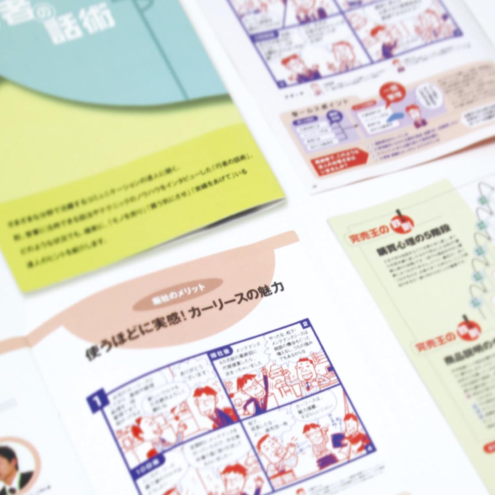 お客様に対して商品やサービス内容を紹介する販促ツールの多数実績があります。単に商品やサービスを紹介するだけでなく、利用者へのインタビューを実施し、具体的なメリットなどを紹介。販売現場の取材を重視しています。営業スタッフのノウハウを共有することができ、販売につながるツールを制作しています。