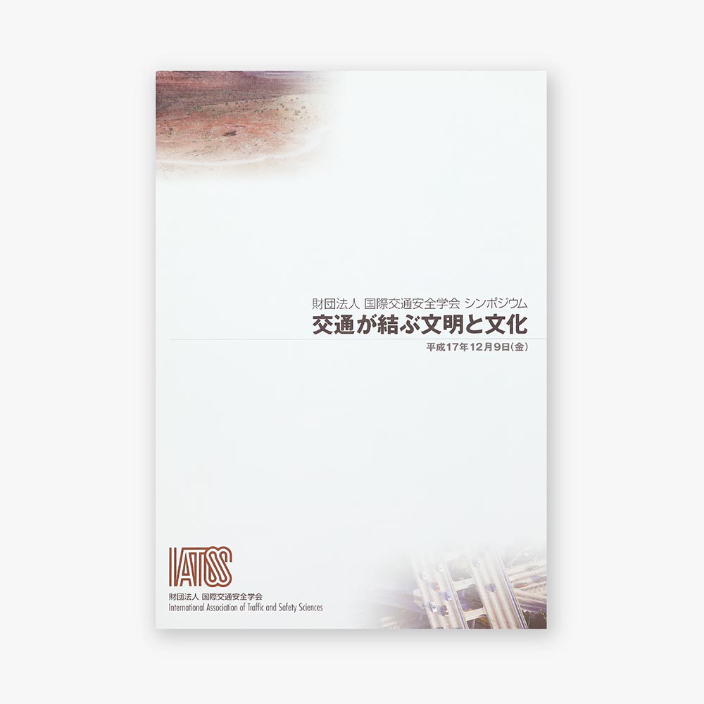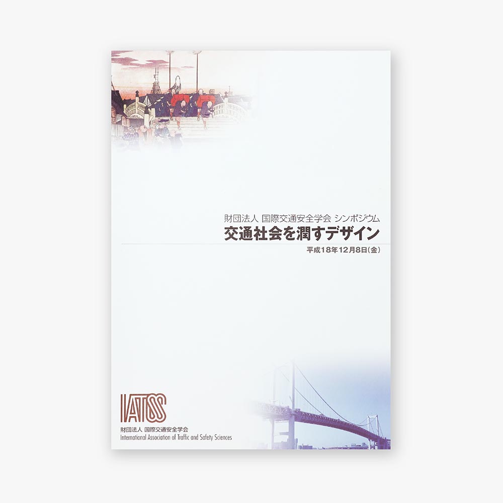 (公財)国際交通安全学会が開催したシンポジウム「交通社会を潤すデザイン」等のパンフレット。シンポジウムのテーマに合わせたメインビジュアルを選定し、ゆとりをもたせたレイアウトで、プログラムや講演テーマ、講演者プロフィールを読みやすく掲載。講演テーマへの興味や関心が高まるように構成しました。